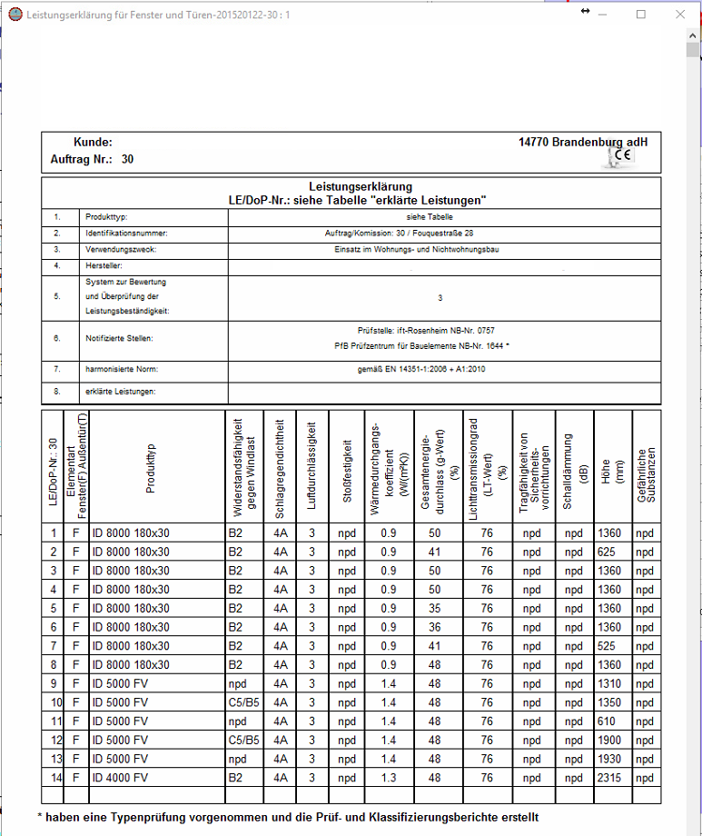 Mit Finestra3000 erstellen Sie mit dem CE Erweiterungsmodul im Handumdrehen Ihre CE Kennzeichnung automatisch oder auch manuell, nach dem Ausdruck der Auftragsbestätigung.
